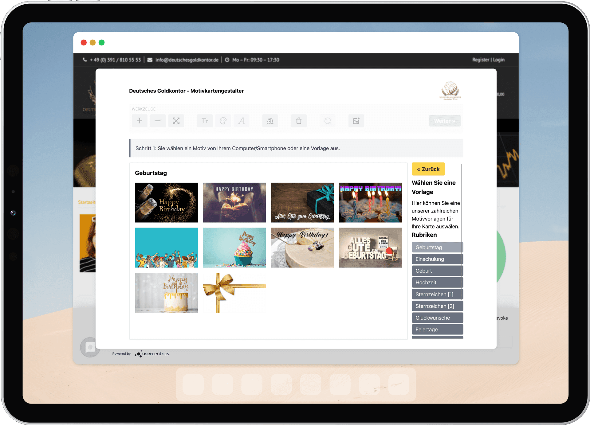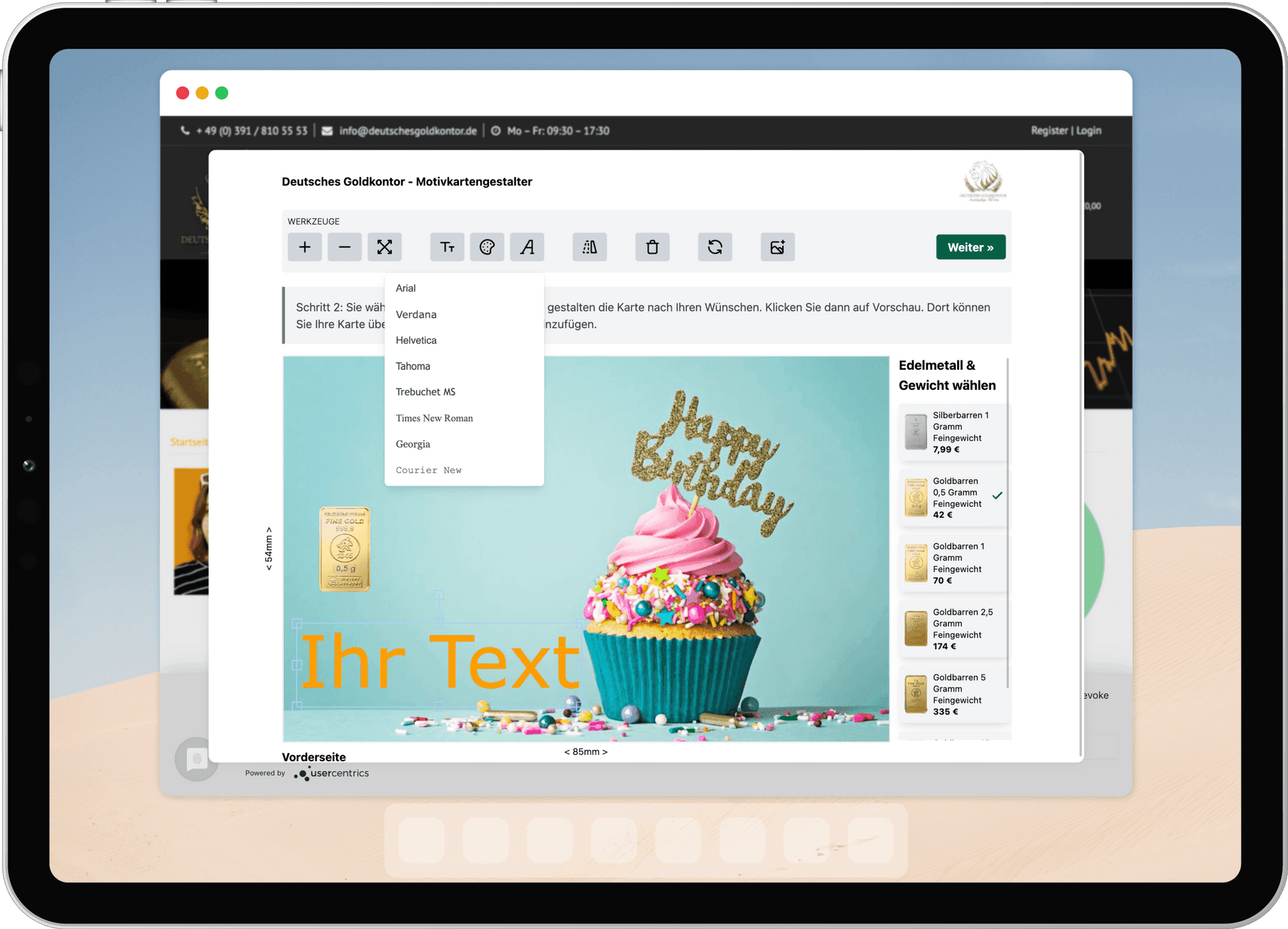 The client has an online shop for gold, silver, and coins. A standalone configurator should be developed to enable customers to create, design, and order custom gift cards, featuring a small gold plate on the front. The project featured a full graphics editor with text, resize, upload abilities, and more. Also, a printable PDF is automatically generated.