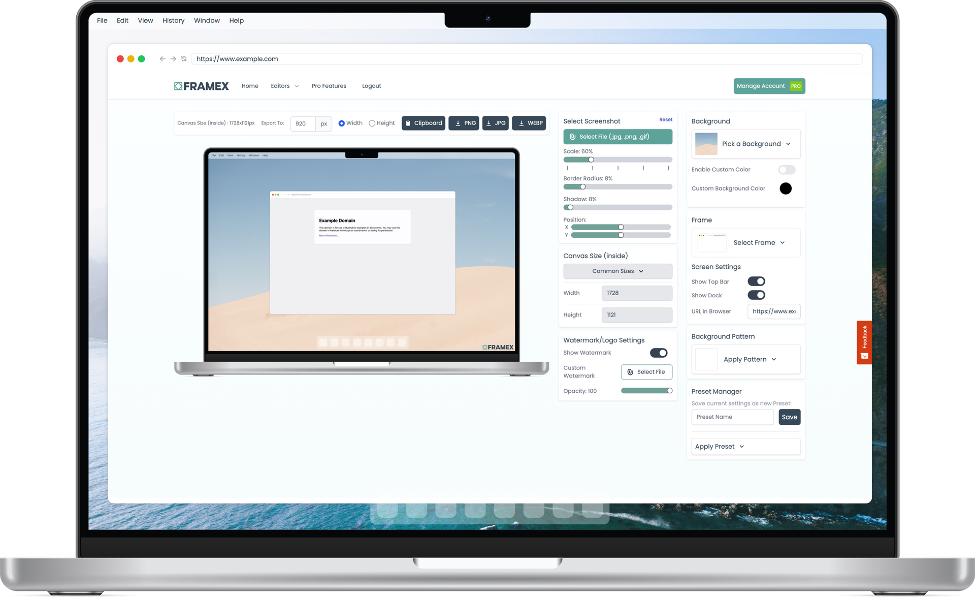 Transform your screenshots into stunning desktop screenshots and mockups with Framex.app - the ultimate online tool for showcasing your website, app, or portfolio in a visually captivating way.